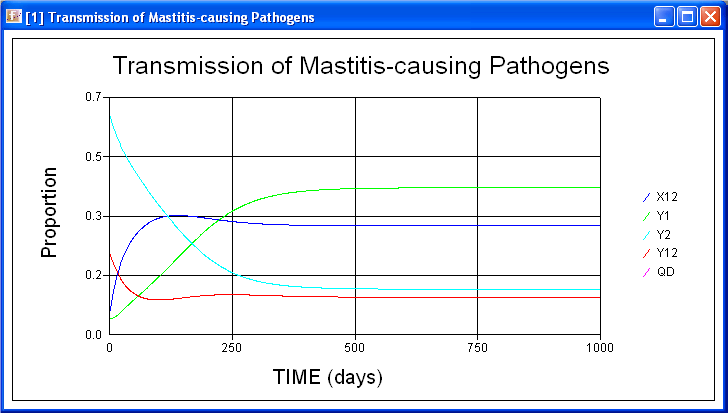 FACSIMILE for Windows has been used in a range of other biomedical applications. An example is its use to help in deriving strategies for the control of Mastitis in dairy cattle herds. Based on White et al.’s mathematical model for the transmission of mastitis, FACSIMILE has been used to fit the parameters for various control problems in order to determine strategies for the prevention of the transmission of mastitis-causing pathogens.