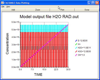 • Complex reaction schemes are readily coded using FACSIMILE’s high-level programming notation, which was designed for stating the problem as a chemist would describe it.