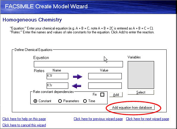• FACSIMILE integrates with a number of kinetics databases, allowing searching either during the creation of a new model or whilst editing an existing model.