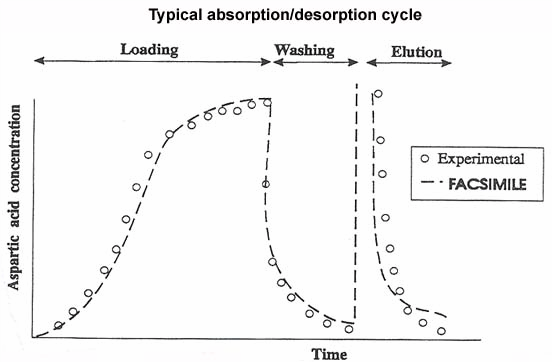 FACSIMILE has been used to accurately simulate the performance of adsorption and chromatographic separations and allow the user to optimise fully, product purification. This capability leads to savings in both time and money. The applications simulated the separation of products using batch stirred tanks, packed beds, fluidised beds, and adsorption membranes, and are suitable to all separation modes including; Ion Exchange, Hydrophobic Interaction, Reverse Phase, Gel Permeation and Affinity.