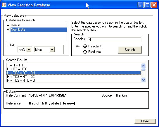 • FACSIMILE integrates with a number of kinetics databases, allowing searching either during the creation of a new model or whilst editing an existing model.