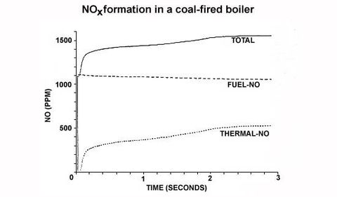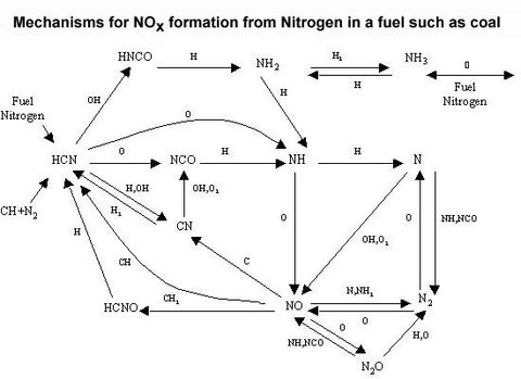 Emissions of nitrogen oxides (NOx) are now of increasing importance in many combustion processes because of their effects on the environment, but their formation is complicated and not well understood. In the burning of coal for example, NOx may be formed by three different mechanisms; thermal, fuel and prompt. Much effort is therefore being placed on modifying the combustion process in order to reduce NOx formation.